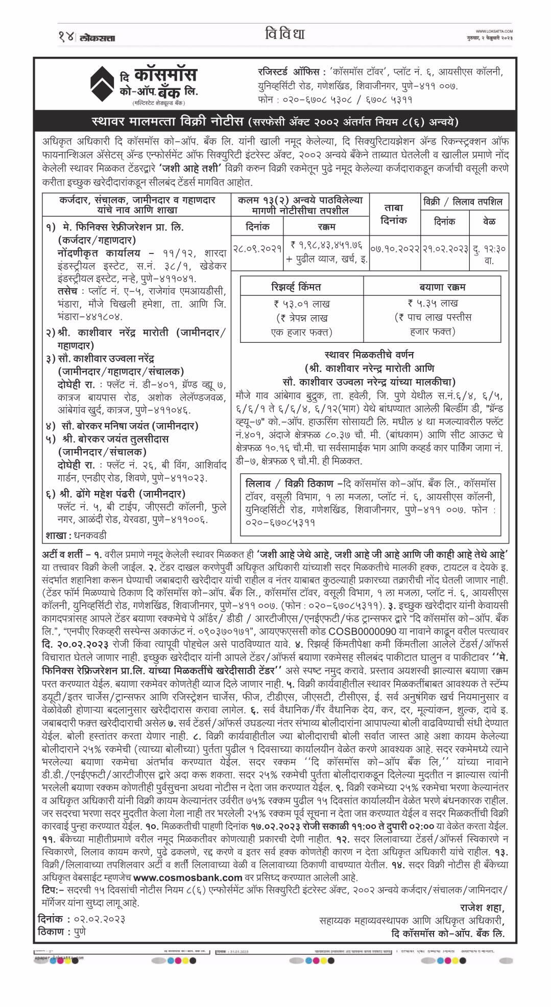 E-Auction Notice For M/s. Phoenix Refrigeration Pvt. Ltd. ( Marathi )