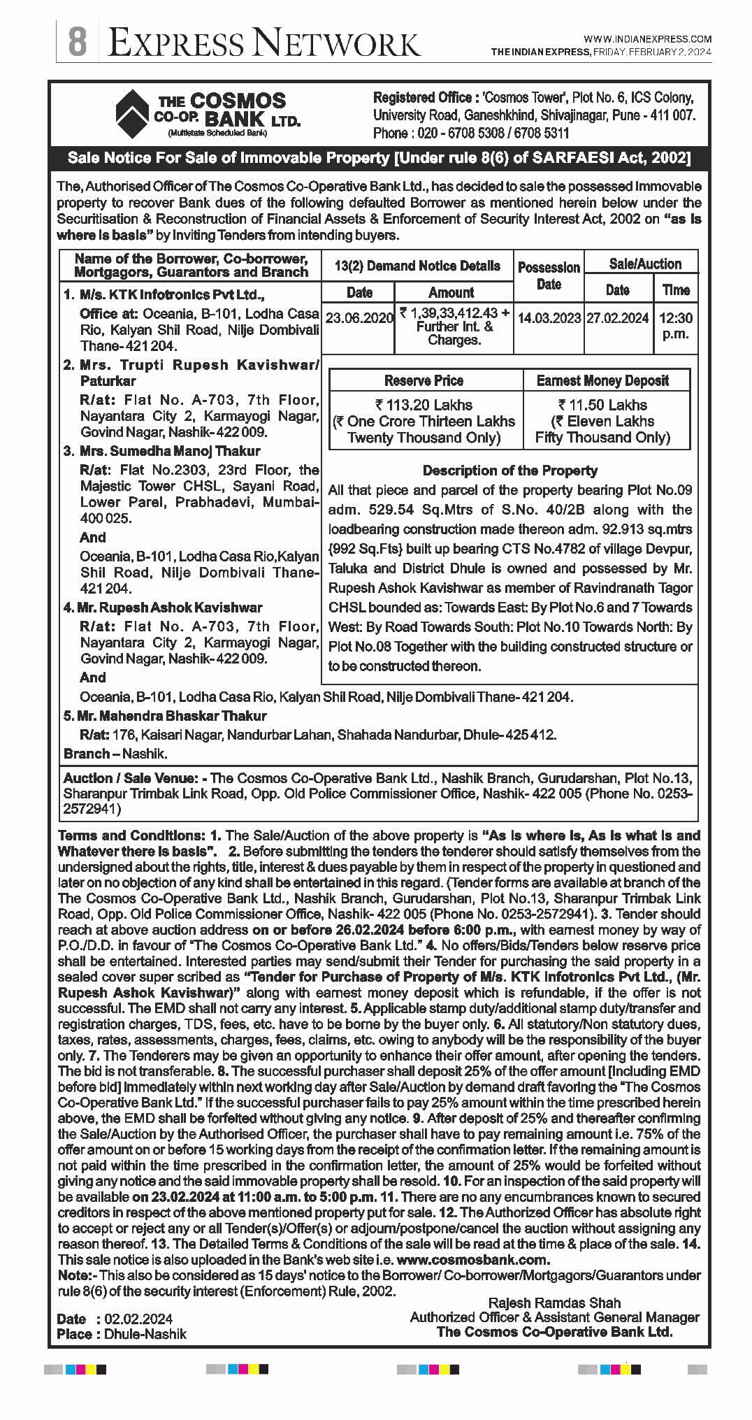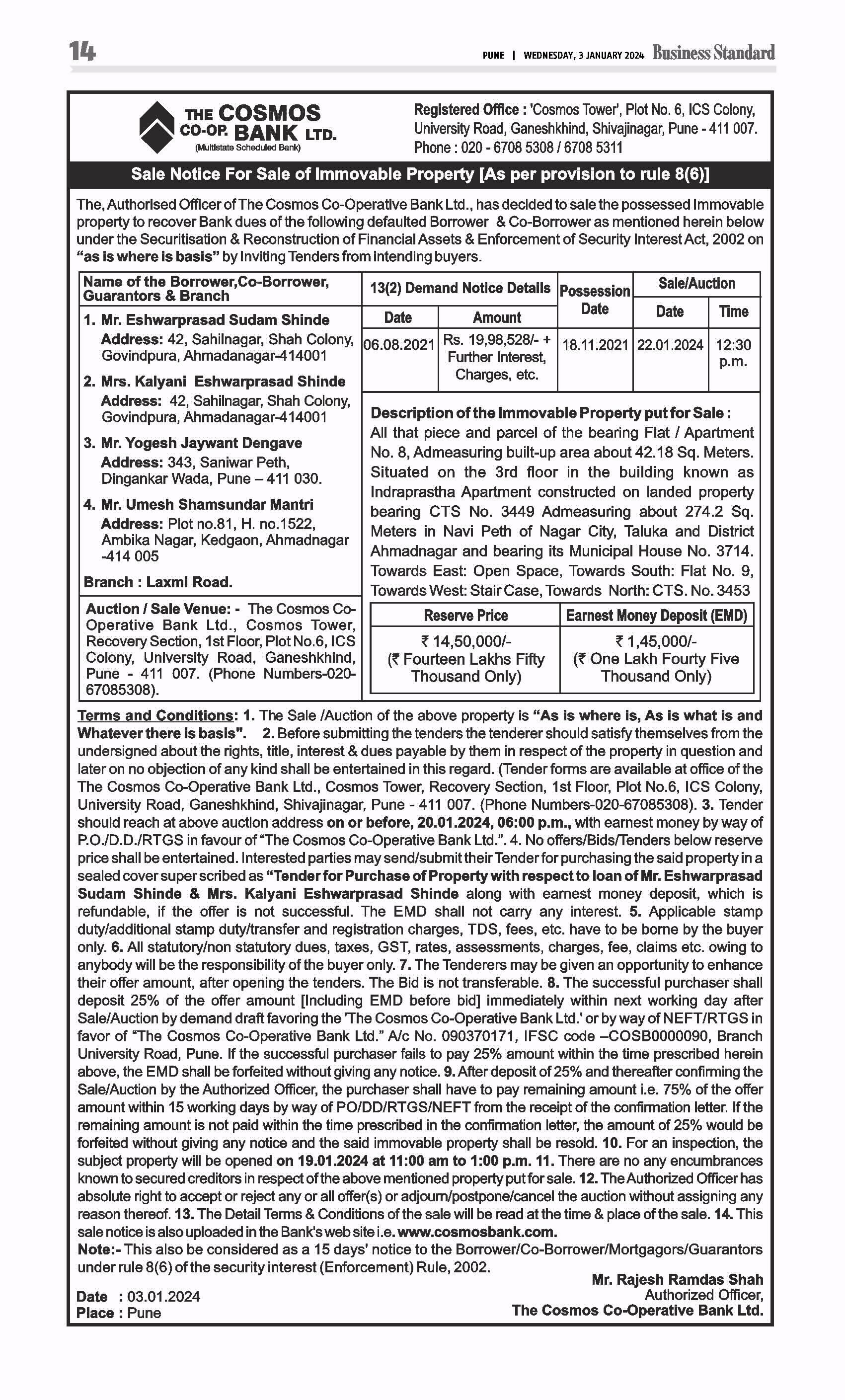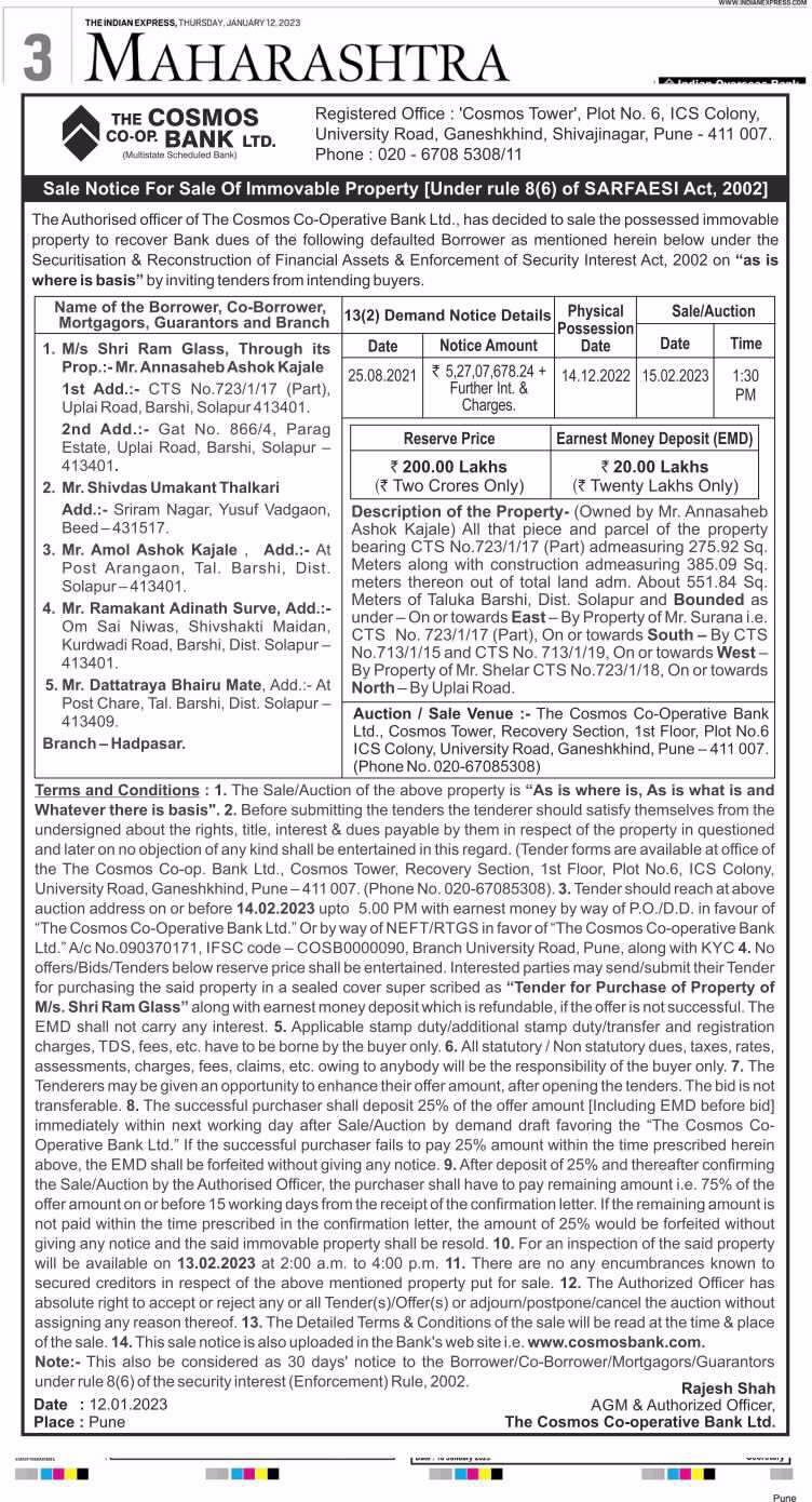 E-Auction Notice For Mr. Rahul Manikrao Jadhav ( Terms & Conditions )