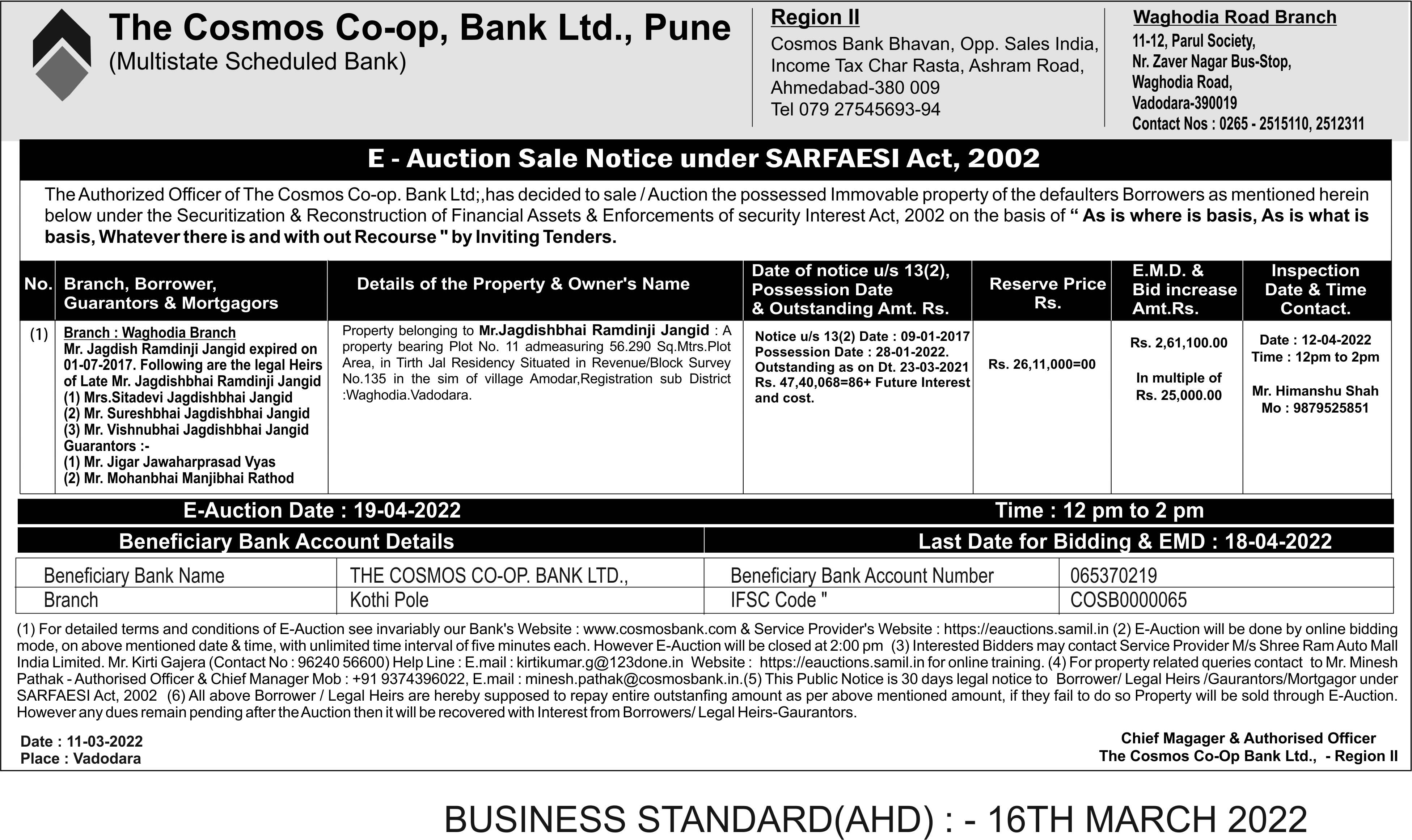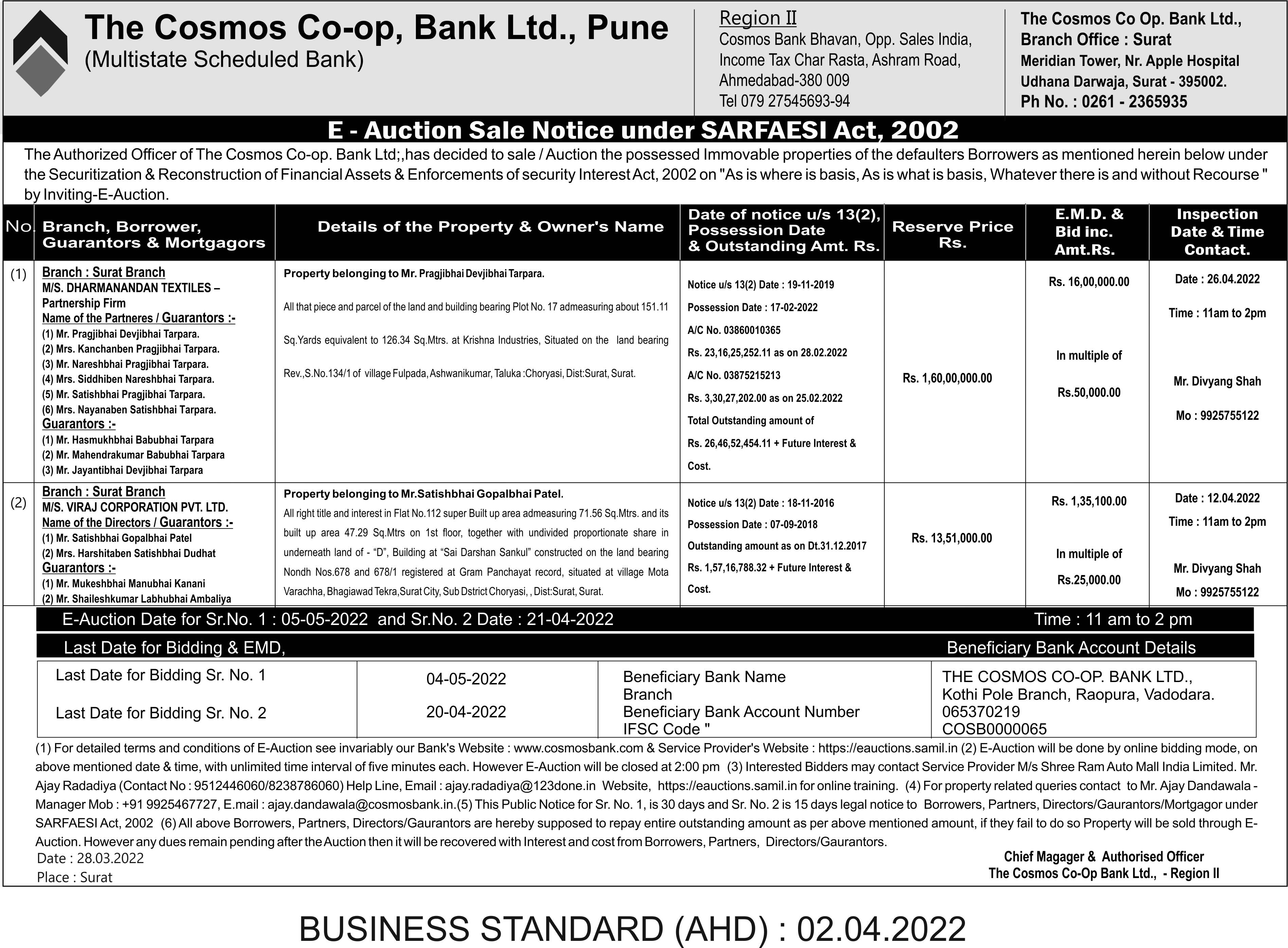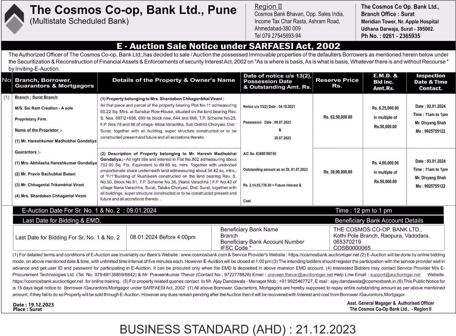 E-Auction Notice For M/s. Viren Vegad & Co ( English )