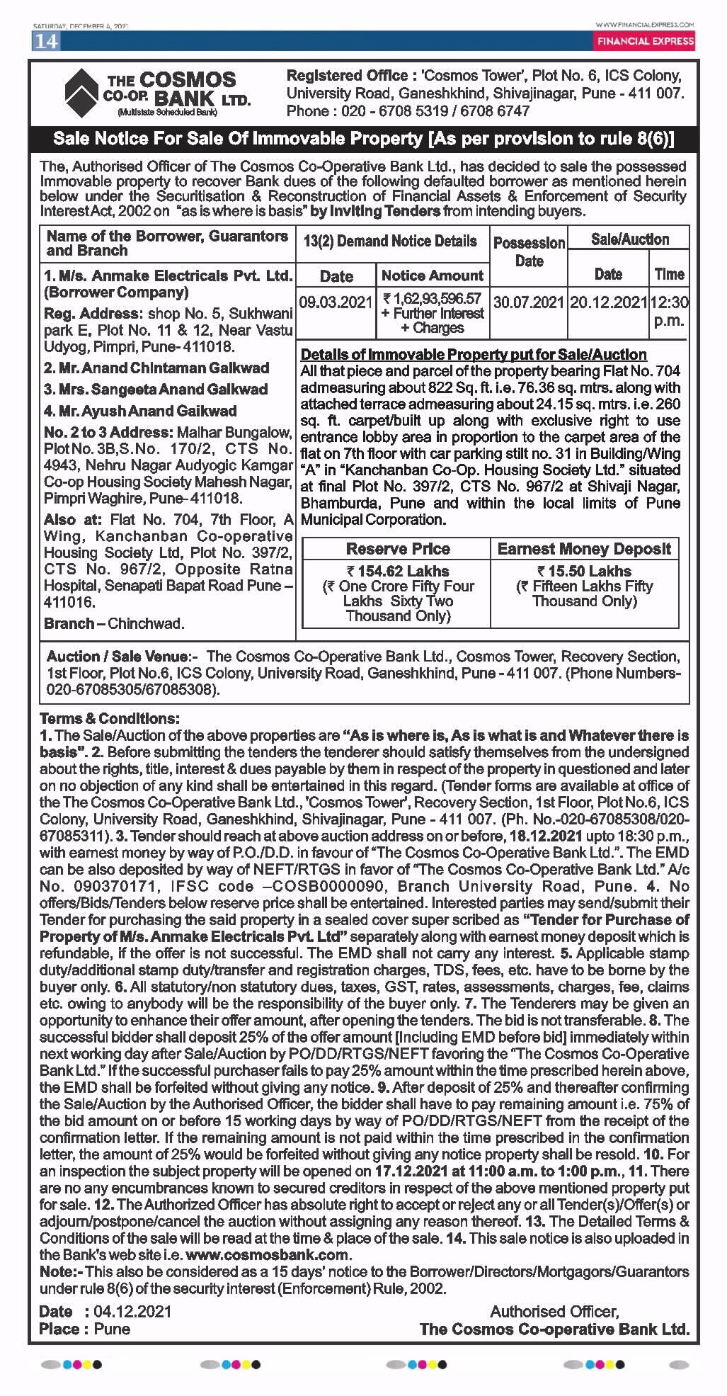 E-Auction Notice along with terms & conditions of Mr. Pawan Adhane ( English )