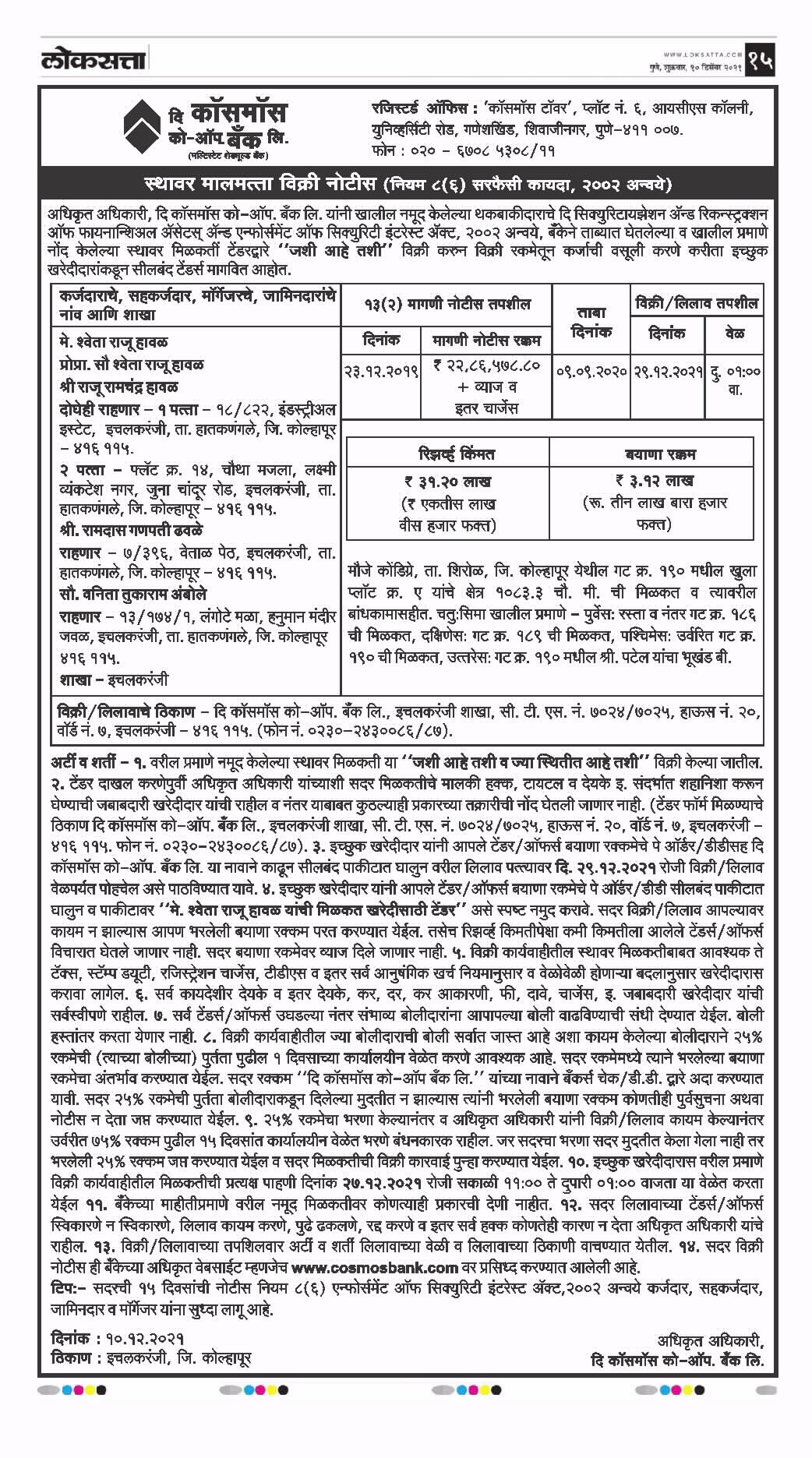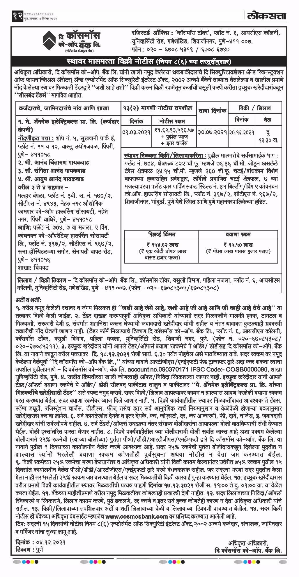 E-Auction Notice For Mrs. Priya Rahul Ausarmal ( Navshakti )