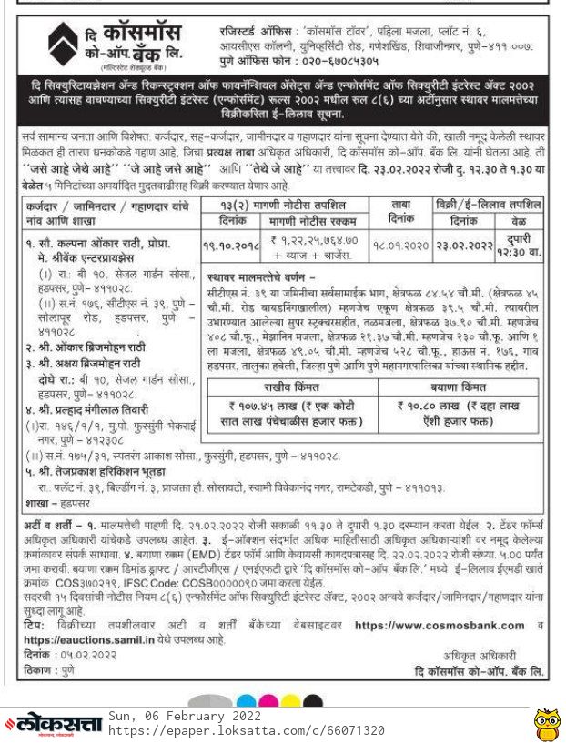 E-Auction Notice For Mr. Sudhir Ramchandra Nage ( Marathi )