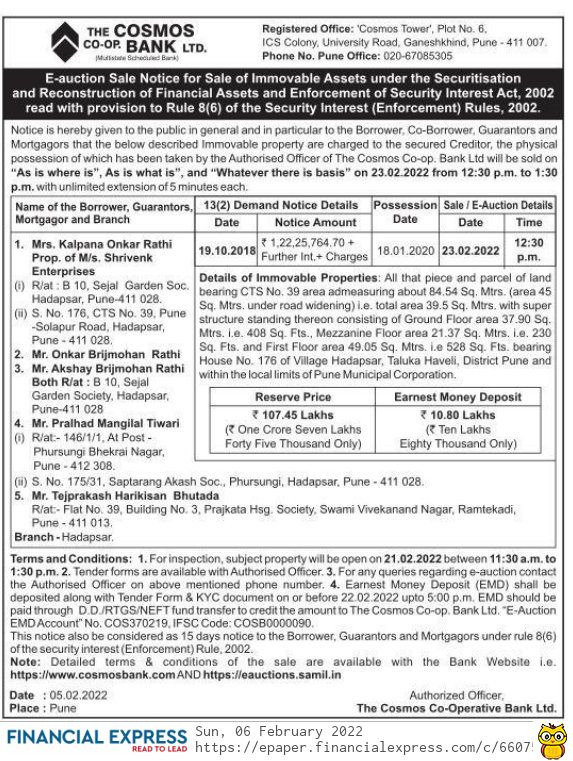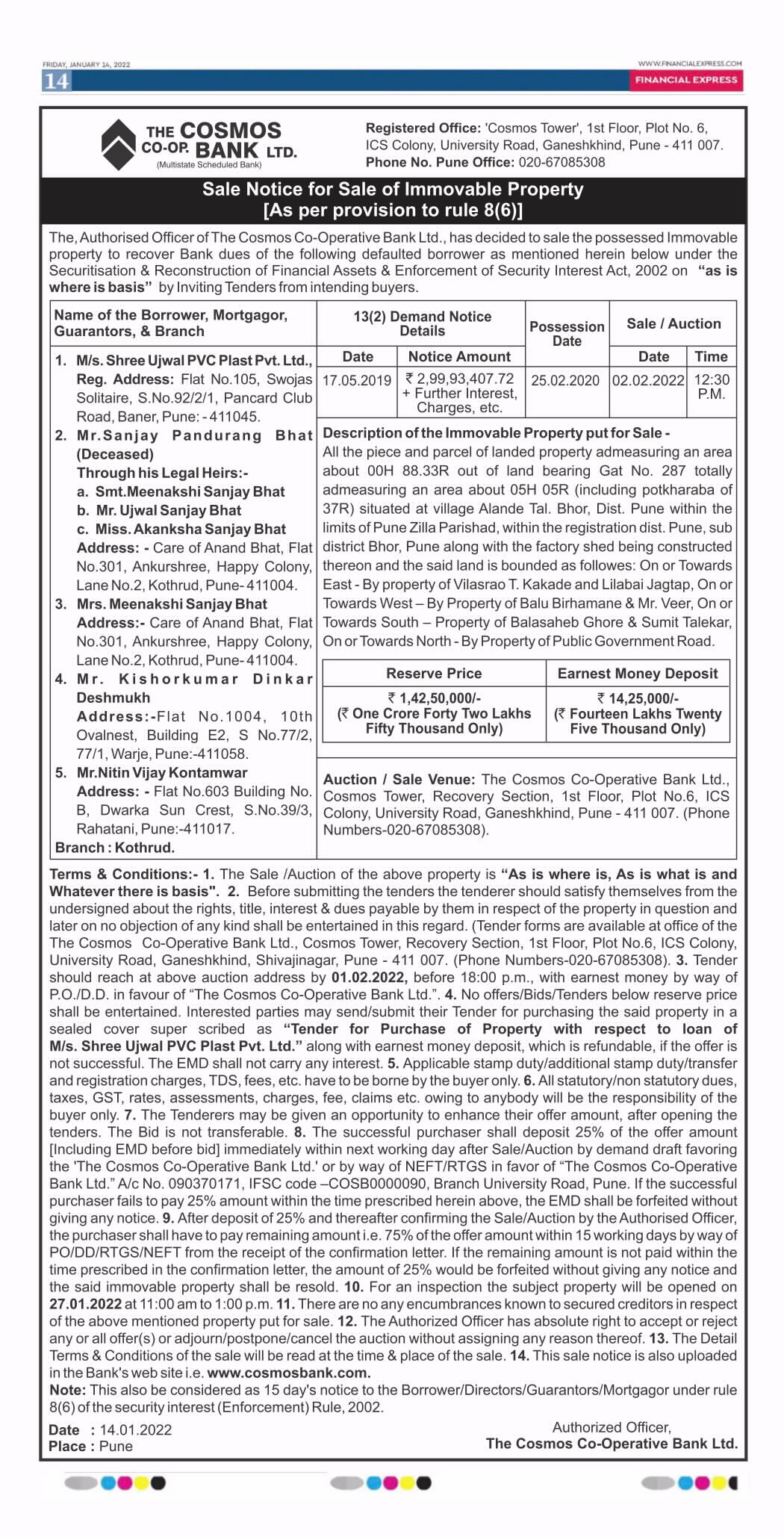 E-Auction Notice For Mr. Madhav Kashinath Patil