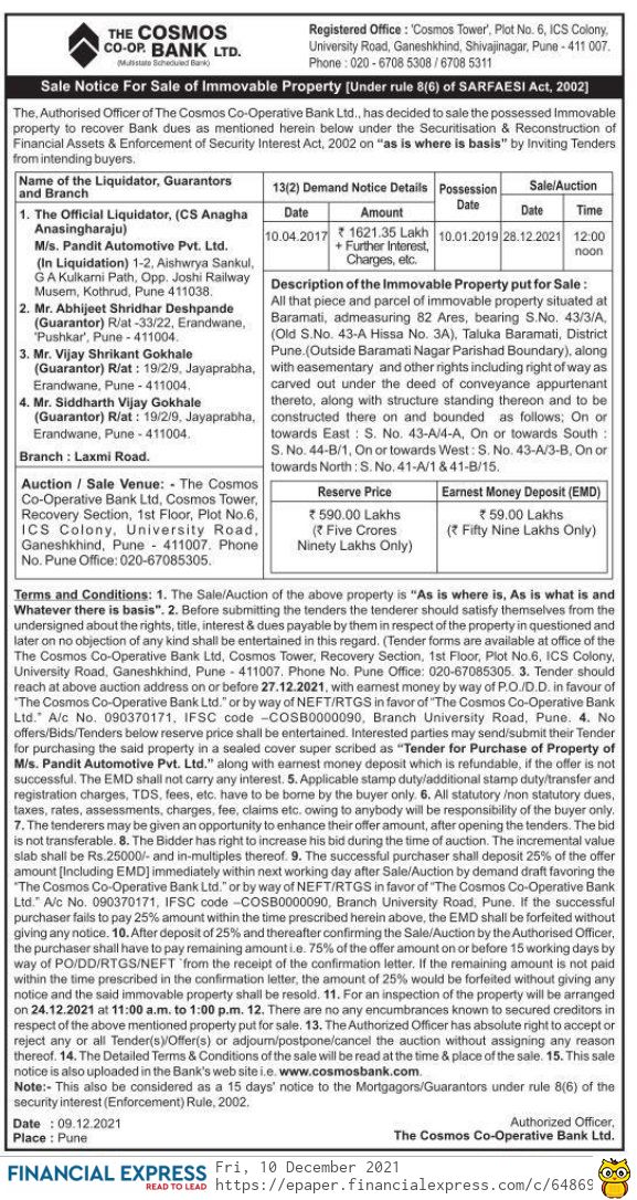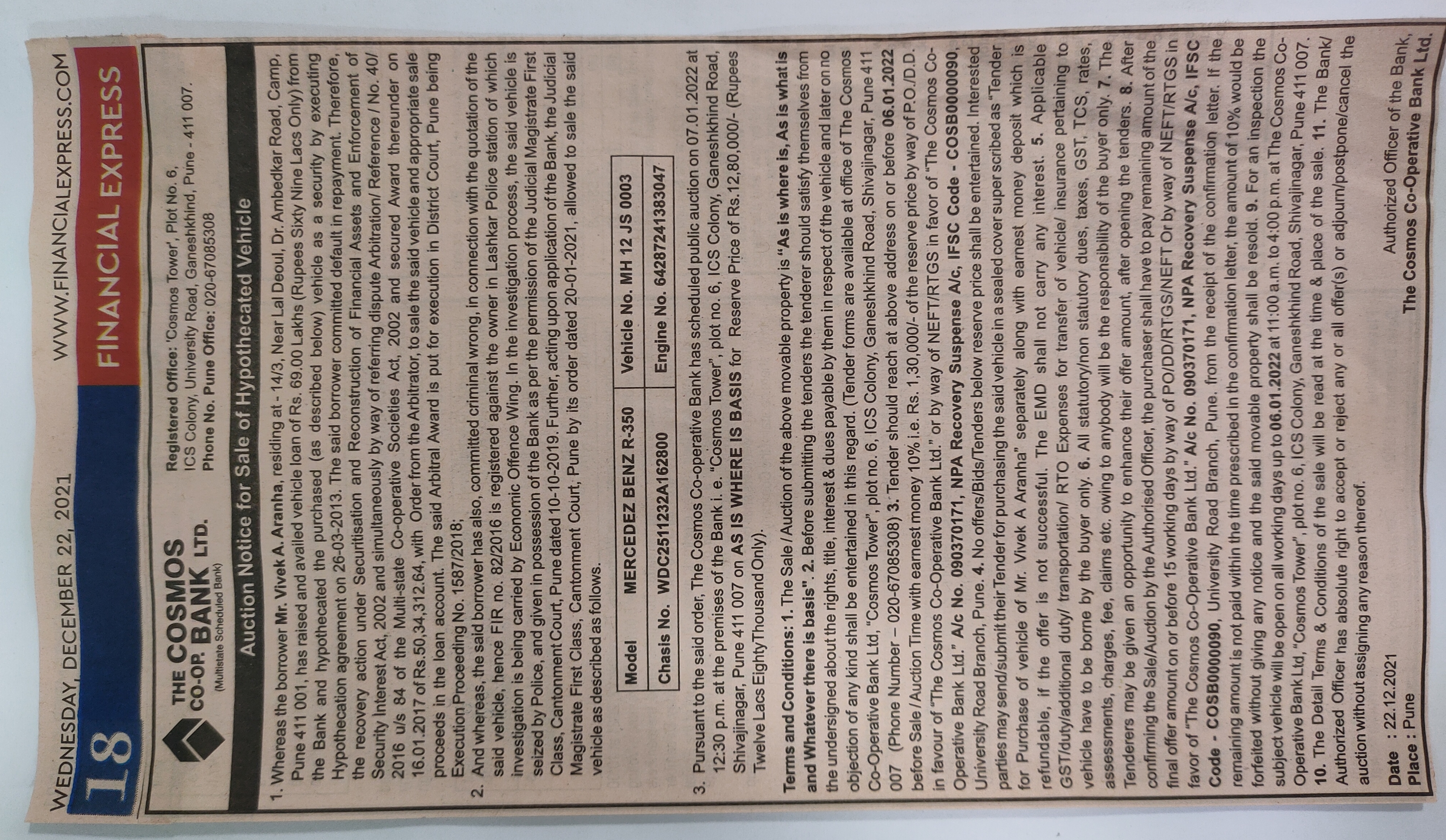E-Auction Notice published in Financial Express ( English) - 20.10.2024