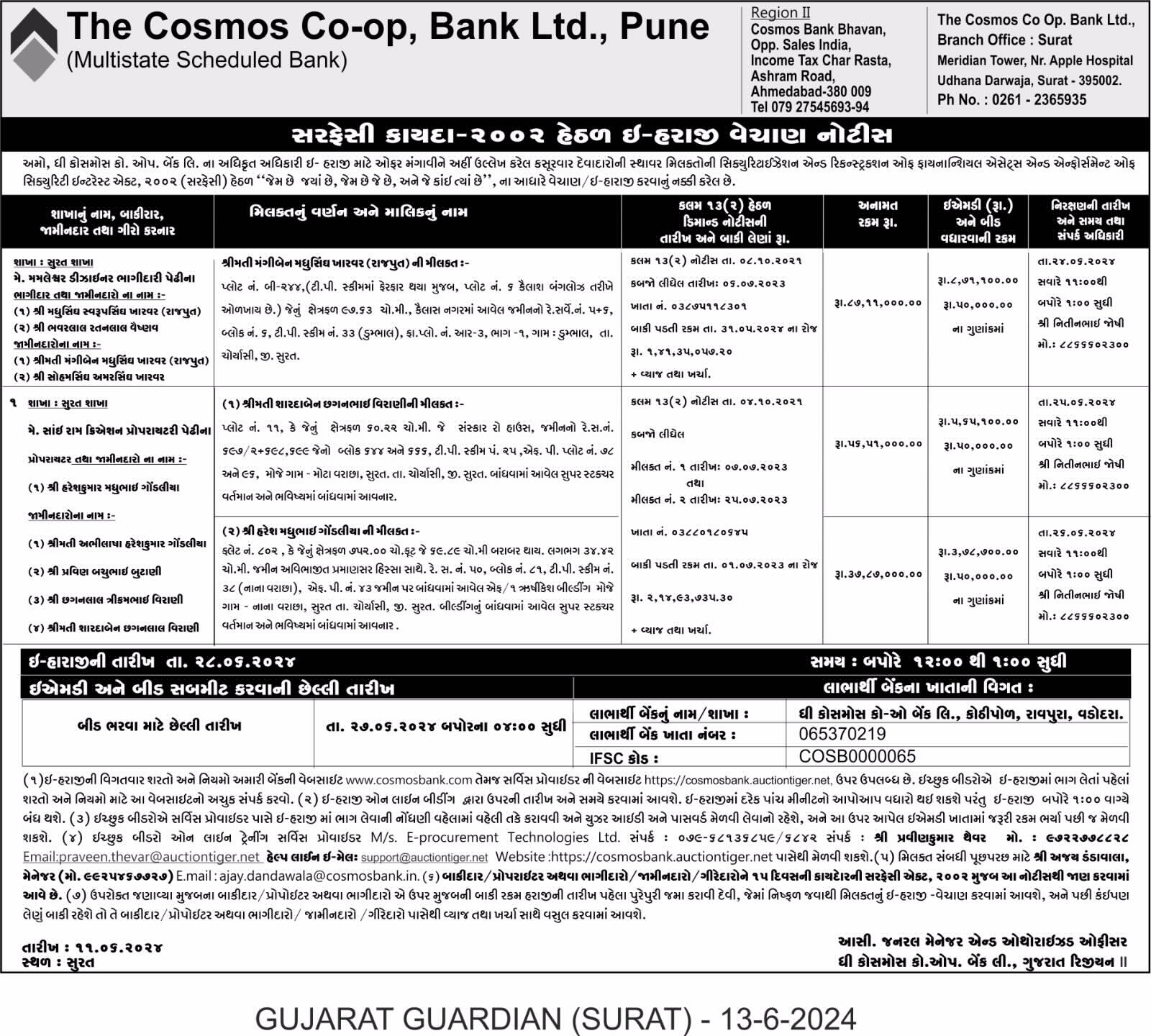 E-Auction Notice published in Jai Hind ( Gujarati) - 20.10.2024