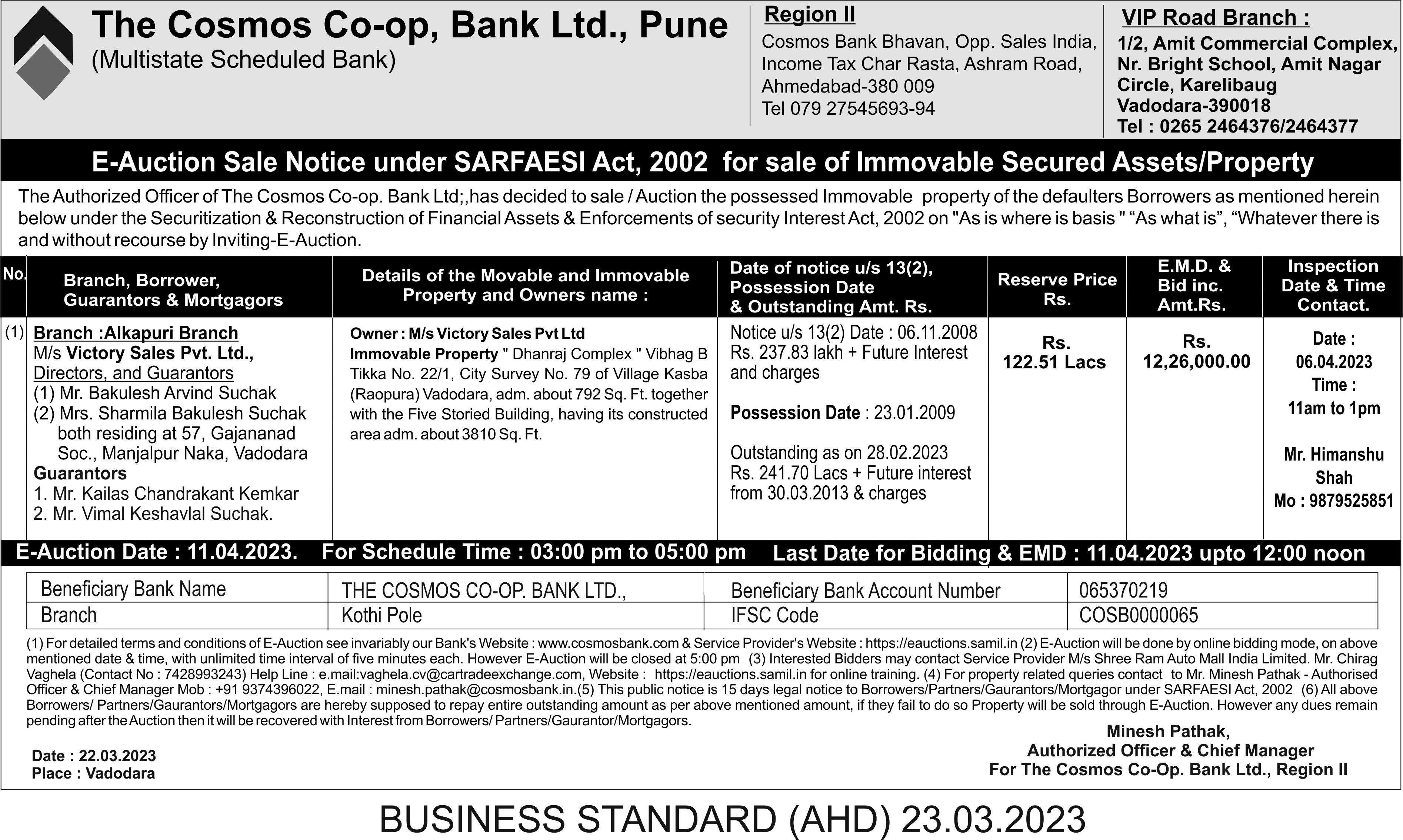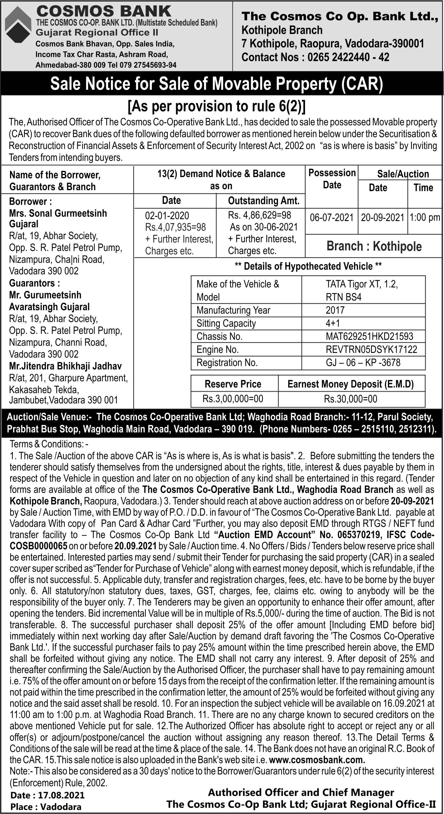 E-Auction Notice For M/s. Baroda Auto Center (English)