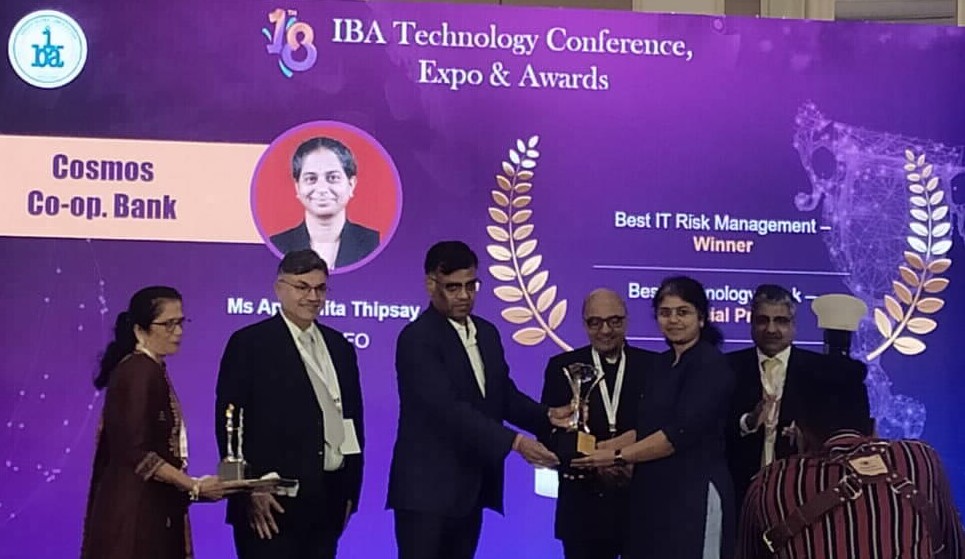 Bank has received special prize in 3 categories from Indian Banks Association (IBA) at its 18th Annual Banking Technology Awards 2022. The awards are received in following categories, viz., Best Technology Talent, Best Technology Bank & Best IT Risk Management. On behalf of Cosmos Bank, the award was received by Bank’s Chief Information Technology Officer, Arti Dhole at the hands of Mr. T Rabi Shankar, RBI Deputy Governor. Eminent juries for these awards comprised of Deepak Phatak, IIT Mumbai, Dilip Asabe, MD and CEO, NPCI & Shiv Kumar Bhasin, CTO NSE.