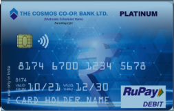 Cosmos offers a RuPay Platinum Debit Card, specially designed to provide you with a host of premium services. This debit card is available for all bank ATMs, numerous POS terminals of traders around India, online shopping eCommerce transactions, and various payments.