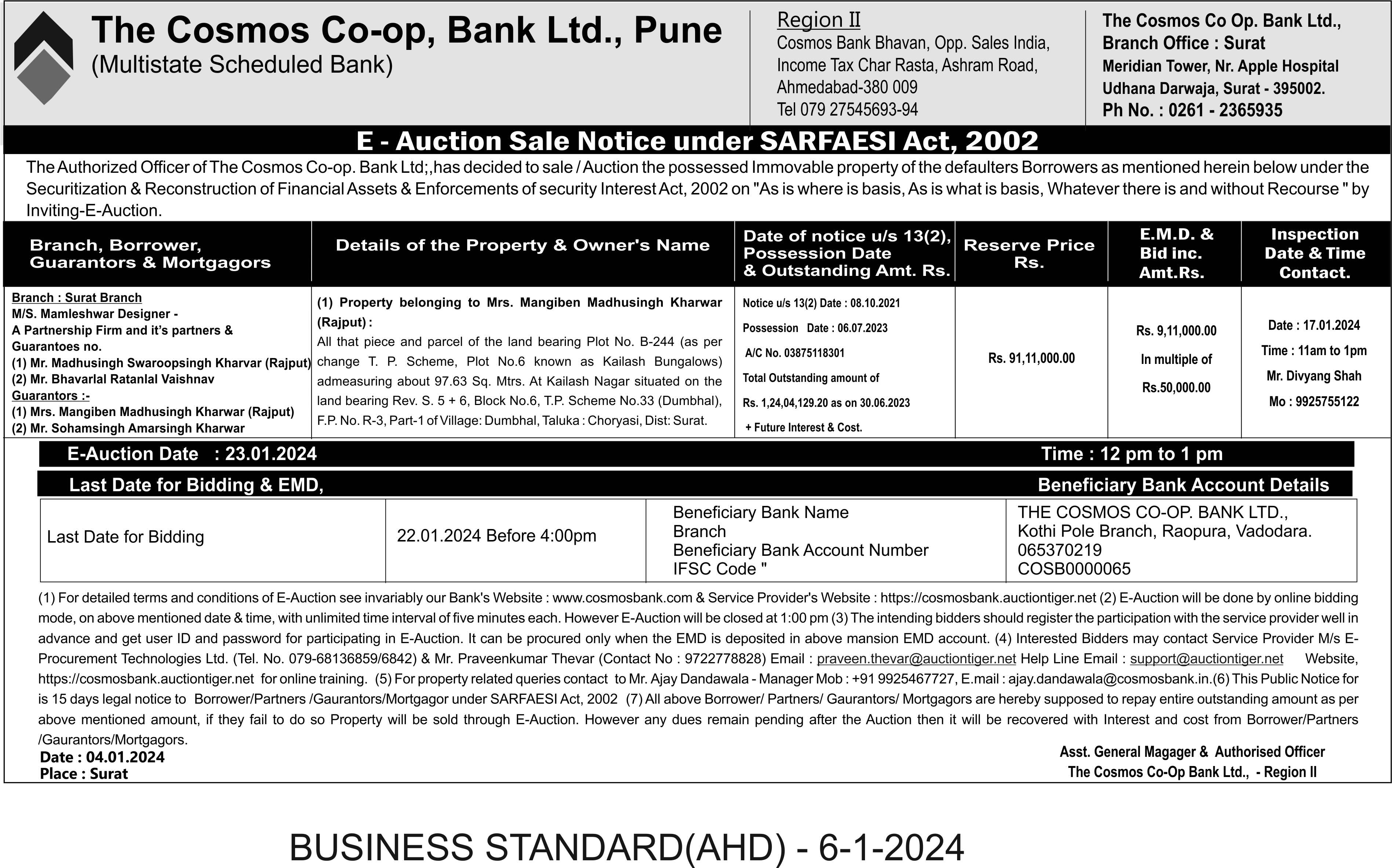 E-Auction Notice For Mr. Jagvandan Maneklal Parikh