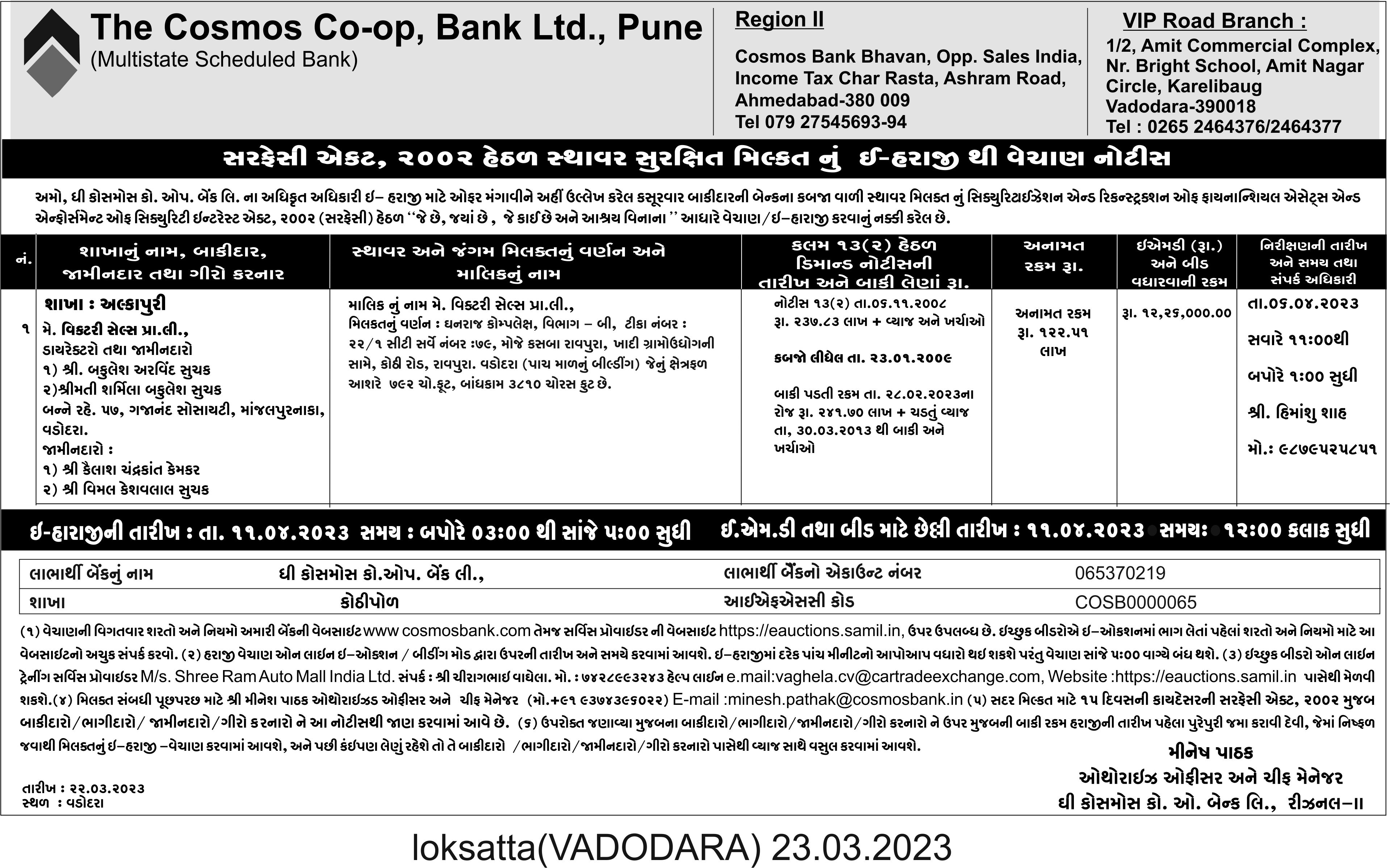 E-Auction Notice For M/s. Baroda Auto Center ( Gujrati)