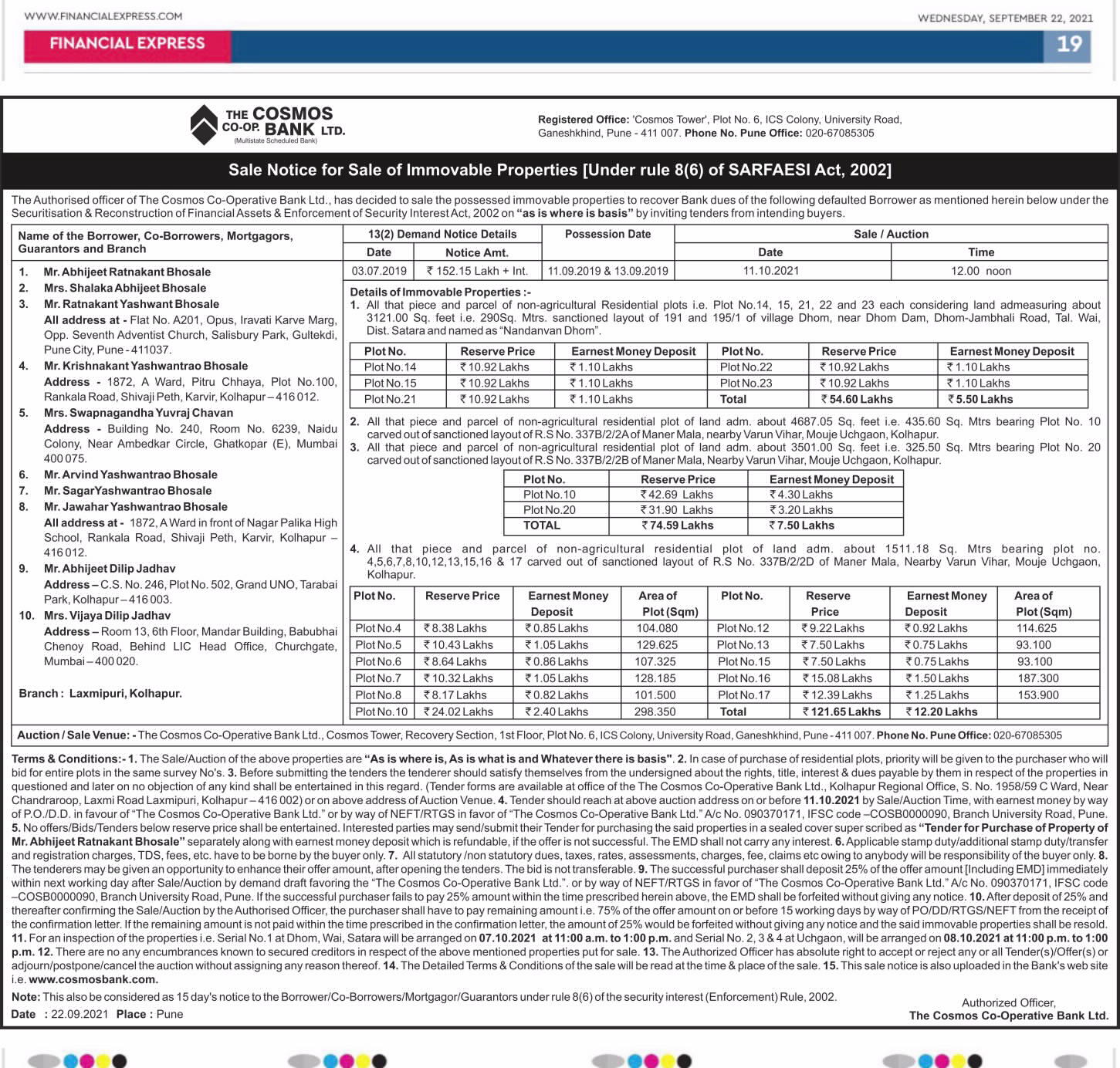 E-Auction Notice For Mr. Rahul Suresh Bhagat ( Terms & Conditions )