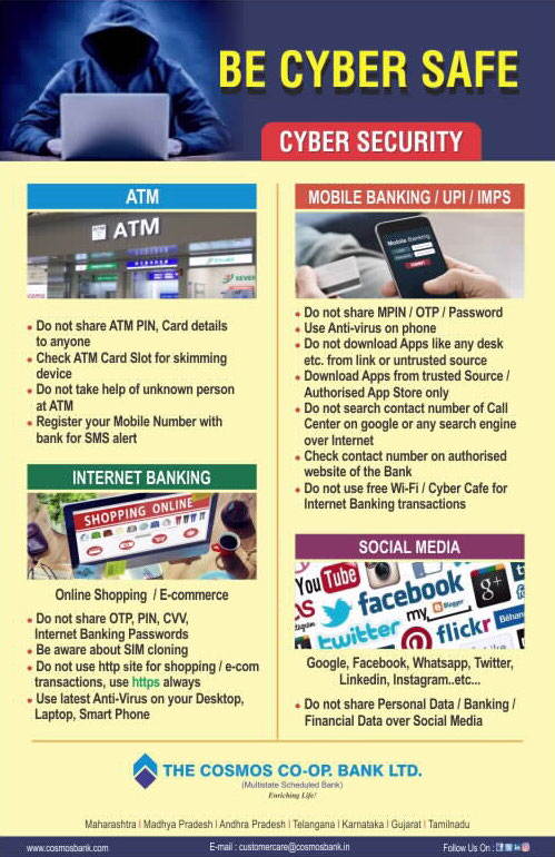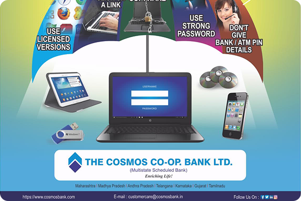 At Cosmos Bank, we are committed to helping you meet all your banking needs to the best of our ability. You can access internet banking portal of our website at any hour of the day. There are no fixed timings to use the facilities. Moreover, enjoy the luxury of getting all the work accomplished at the comfort of your home or office, at any hour that is preferable for you
