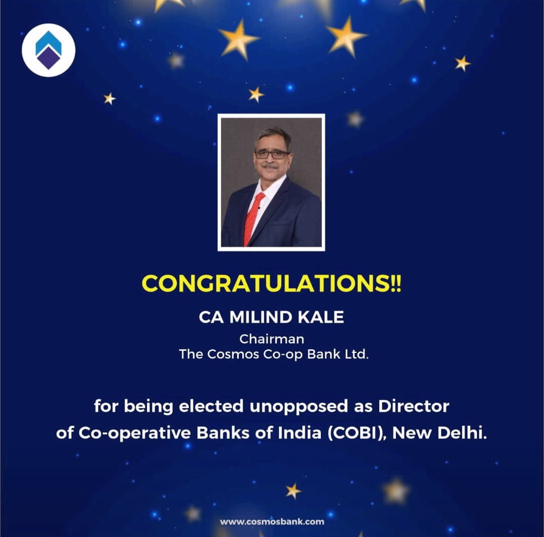 During the Annual General Meeting of Cosmos Bank held at Pune on 28.06.2024, Chairman CA Milind Kale declared dividend of 15% for Members.