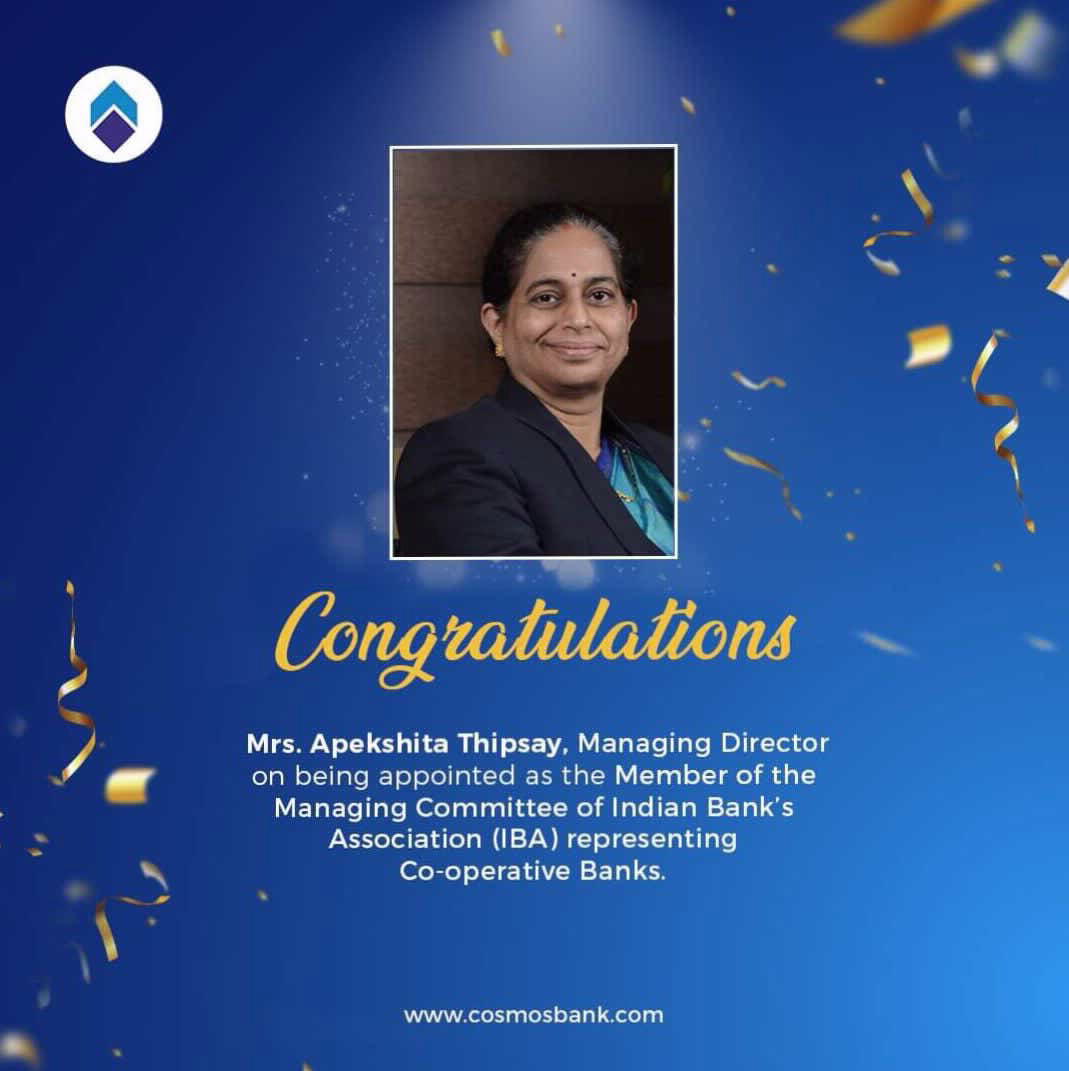 Managing Director, Mrs. Apekshita Thipsay appointed as a Member of Managing Committee of Indian Bank’s Association (IBA)
