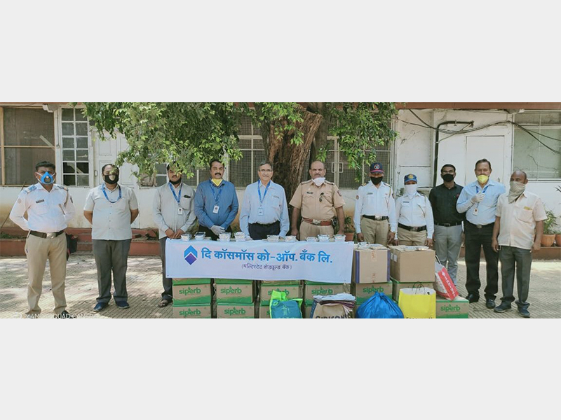कॉसमॉस बँकेतर्फे गरजूंना पाणी, जेवण, आणि जुने कपडे यांचे पुणे पोलिसांमार्फत वाटप