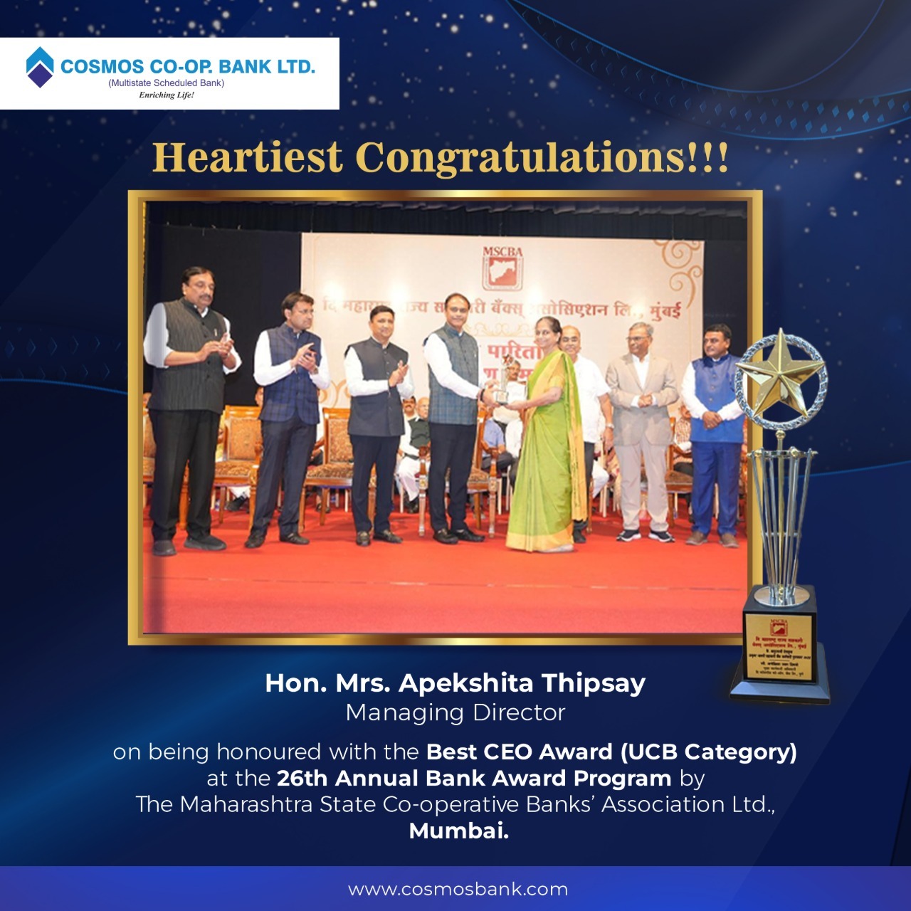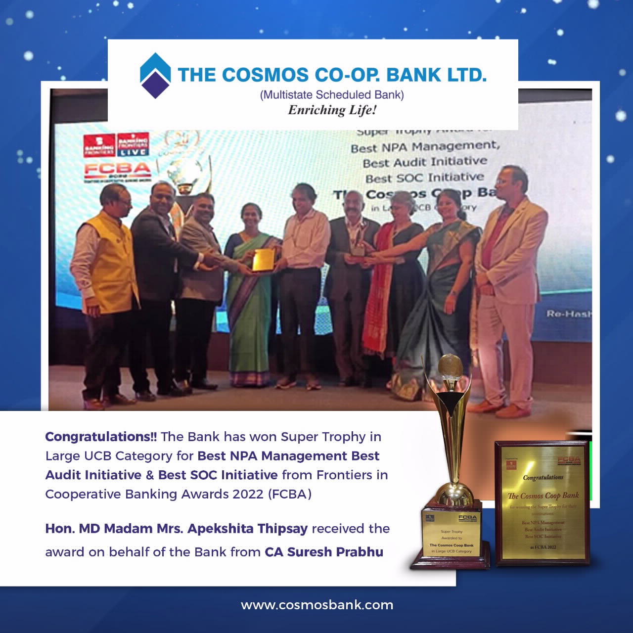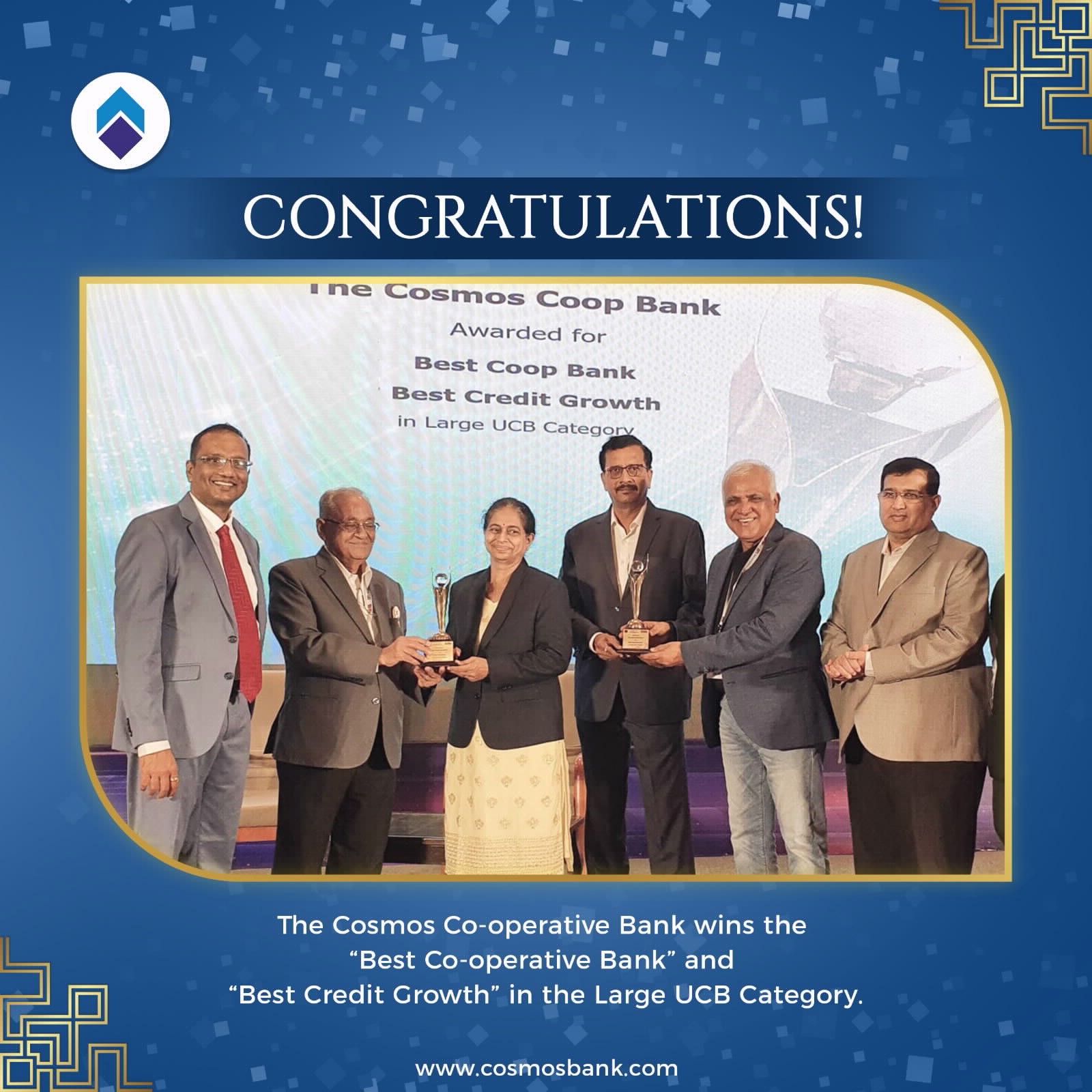 Cosmos Bank has recently won three prestigious awards presented by National Federation of Urban Cooperative Banks and Credit Societies Ltd. (NAFCUB) & National Cooperative Union of India (NCUI)