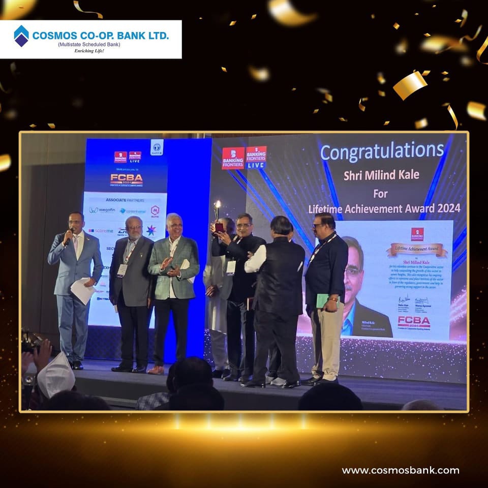 We are elated to share that at the prestigious award function held in Lucknow, our Hon. Chairman, CA Milind Kale, has been honoured with the Lifetime Achievement Award 2024 by Banking Frontiers! This remarkable accolade recognizes his unwavering dedication and exceptional contributions to the banking industry. His vision and leadership inspire us all! In addition to this incredible honour, our bank has achieved excellence in four key categories: -Best MIS Analytics -Best SOC Initiative -Best HR Innovation -Best AML and KYC Compliance